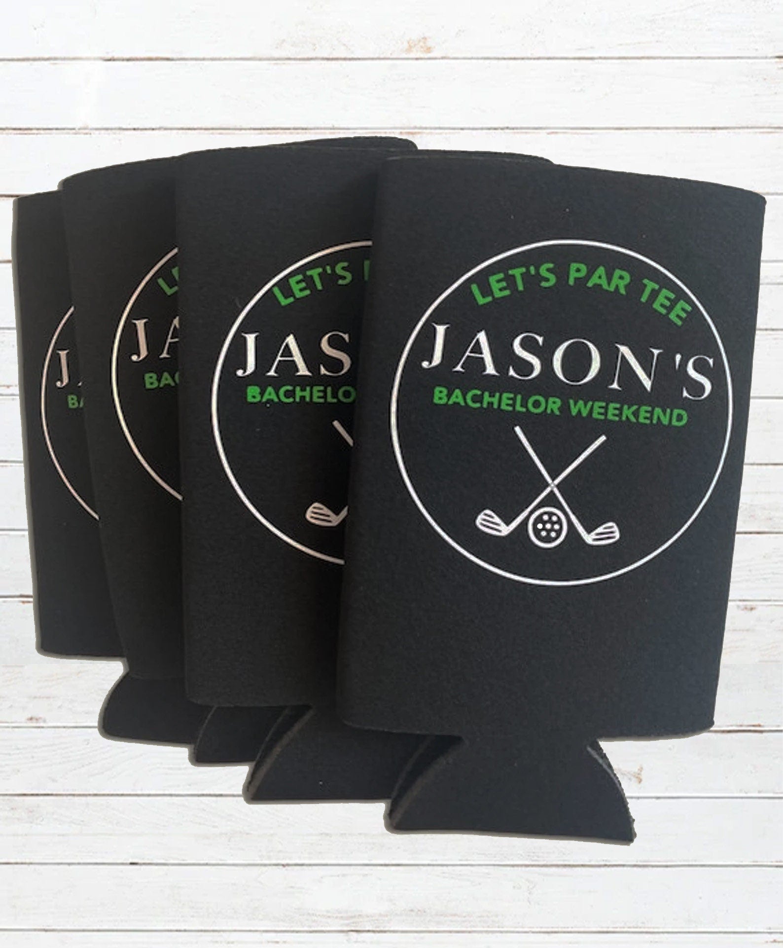Keep the drinks cold and the party rolling with these fun Golf Bachelor Party Koozies! Perfect for golf fans, they come with playful golf designs and can be personalized with names of your choice. Available in slim and regular sizes, these coolers make great keepsakes for the whole crew. Durable and colorful, they’ll add extra swing to your bachelor party celebrations. Cheers to a hole-in-one celebration!