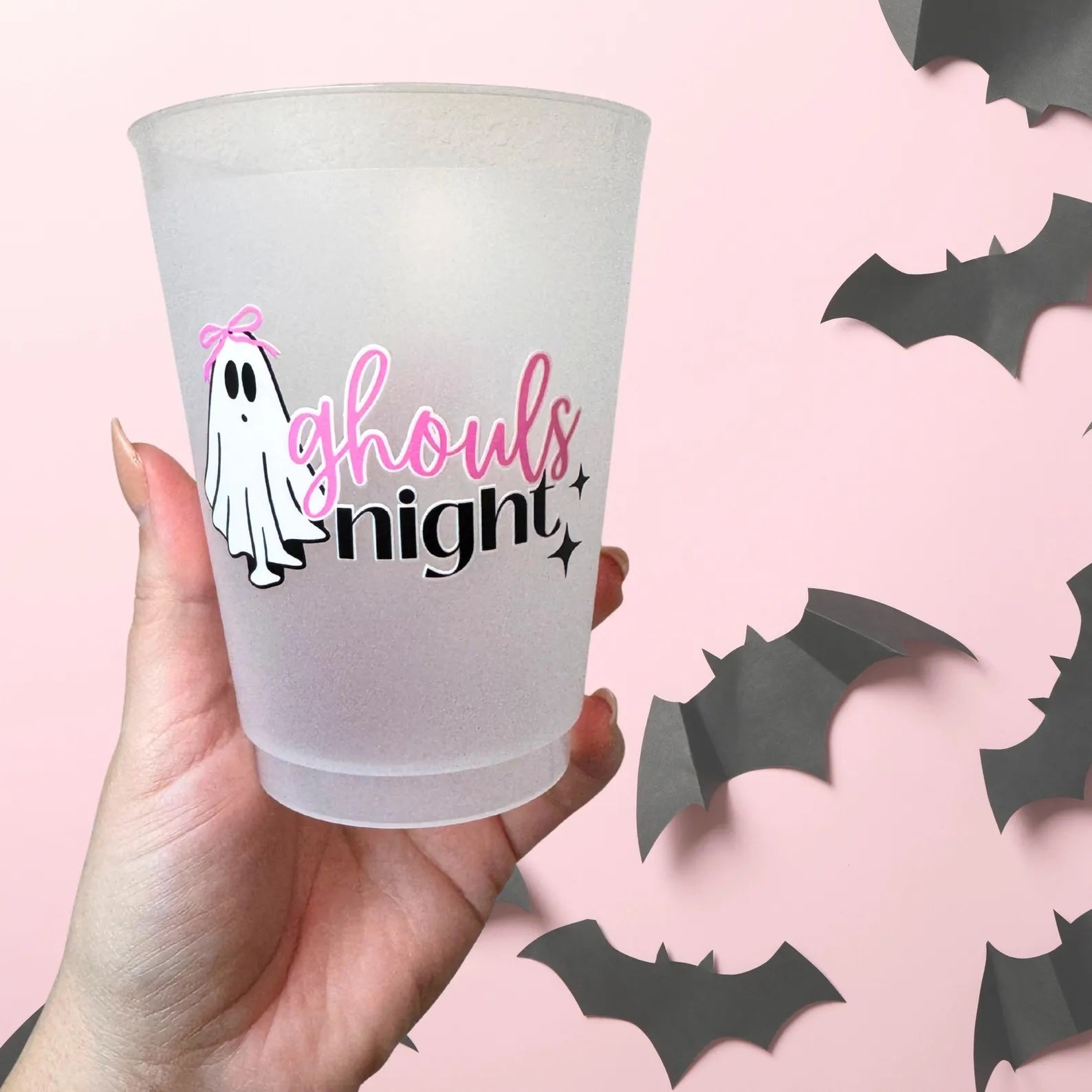 🎃☀️ Celebrate Halloween with a Ghouls Night! These Ghouls Night Cups are the perfect blend of spooky and cute — ideal for girls craft night, girly get togethers, or any ghoulishly fun event this fall. Made from durable frosted plastic, these 16 oz cups are both stylish and reusable, making them your go-to drinkware for creepy cocktails, witchy lemonades, or pumpkin spice iced teas.
