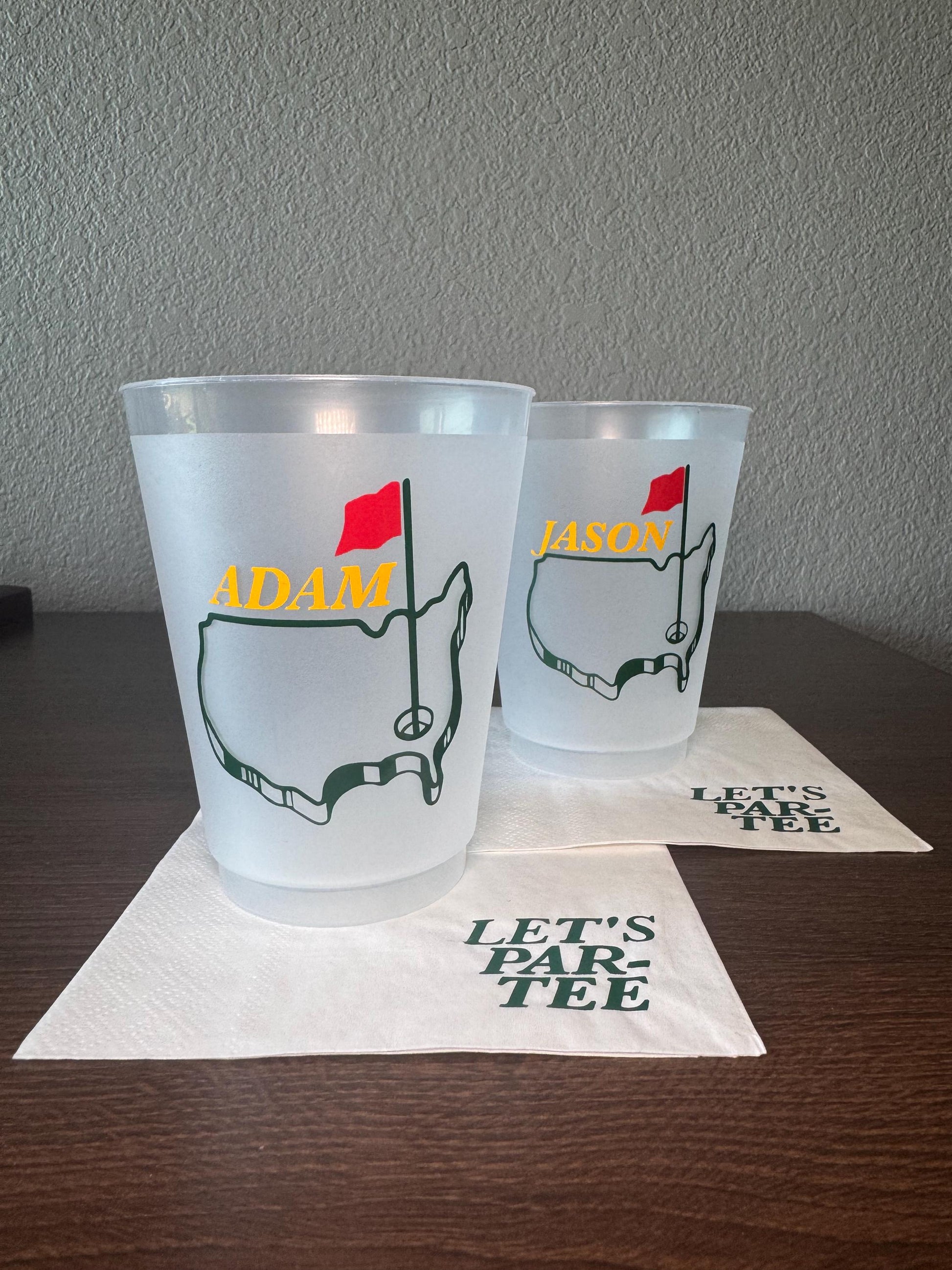 Celebrate your golf party in style with these fun Custom Golf Cups! Durable and reusable, they hold 16 oz of your favorite drink. Customize with your choice of text to make every sip uniquely yours. Perfect for bachelor parties, tournaments, or any golf-themed event, these cups add a playful touch and make great party favors. Tee off your celebration with a swing of personality!
